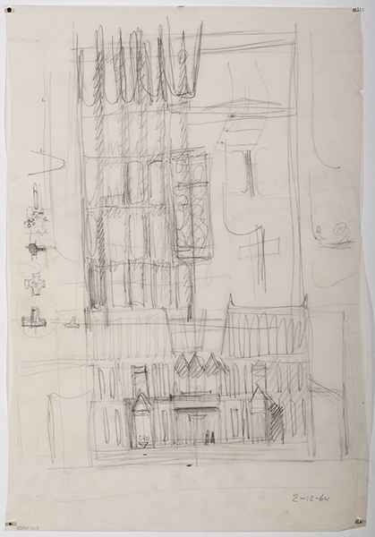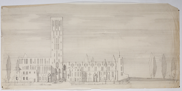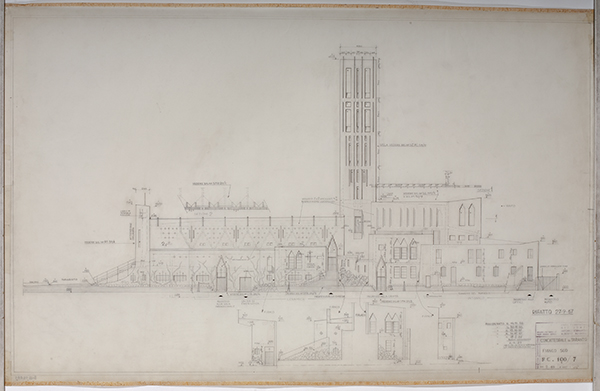 Ponti immagina uno spazio insieme sacro e civile, inserito in un contesto più ampio che comprende abitazioni, asilo, scuola, biblioteca, auditorium e museo: non solo una cattedrale, ma un vero e proprio quartiere modello di civiltà.